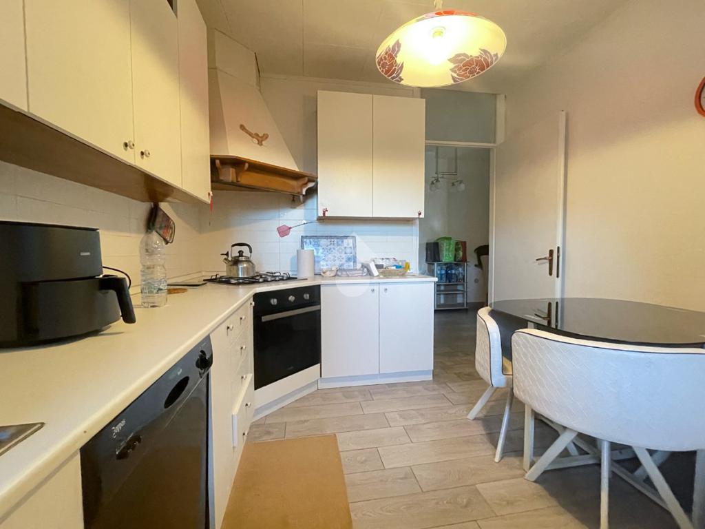 L’appartamento è composto da un ampio e luminoso soggiorno con accesso diretto sul terrazzo, perfetto per pranzi domenicali, cene estive e momenti di relax all’aperto. La cucina è separata dal soggiorno, funzionale e ben organizzata.